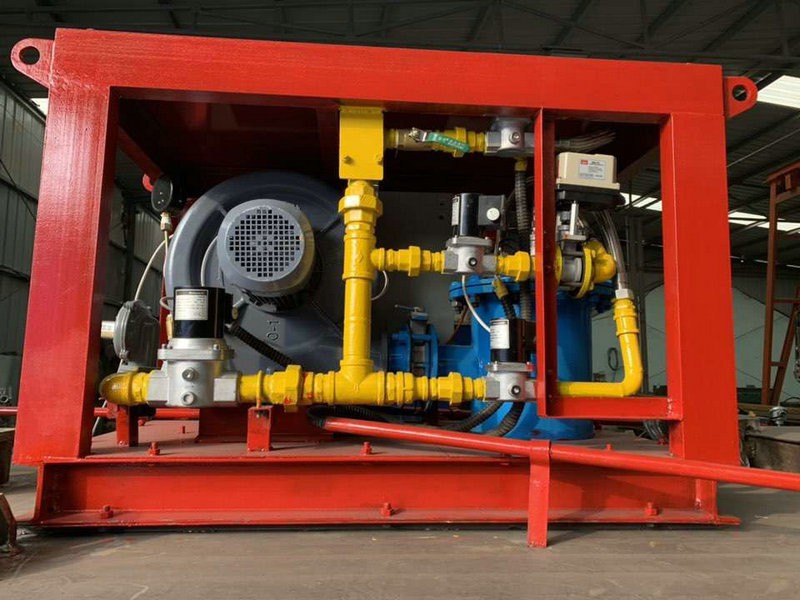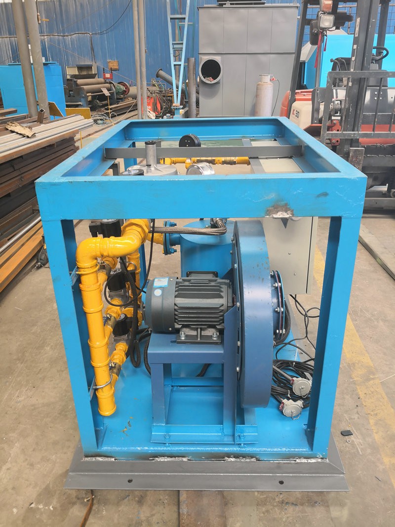 中间包烘烤器:包括燃烧器、鼓风机、助燃风管道系统和煤气管道系统,所述助燃风管道系统一端连接鼓风机,另一端接入位于燃烧器前的煤气管道系统,还包括通过控制煤气管道阀门开闭自动调节温度的控制系统,所述燃烧器为1-5个(根据膜胎尺寸确定),中间包工作层受热均匀,易脱模节能效果明显。